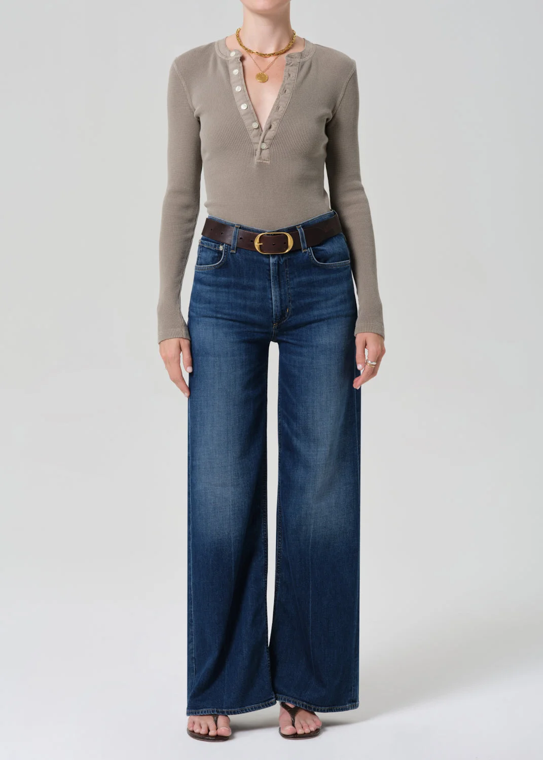 The Drea is a refined henley crafted from ultra-soft regenerative cotton in a textured waffle rib. Designed with a close fit and subtle neckline detailing, it offers supportive stretch and effortless versatility—perfect on its own or layered under your favorite pieces. This fit is true to size. Looks Like: Medium olive green mineral dyed long sleeve waffle textured henley Feels Like: Midweight soft cotton with waffle thermal texture throughout This product is made with regenerative cotton from Citizens of Humanity Group’s Regenerative Cotton Program. Our program collaborates closely with farmers both domestically and internationally, nurturing growth, fostering education, and encouraging the widespread adoption of regenerative agricultural practices. From our HUMANITY Collection DETAILS Body Length: 23 1/2" Chest: 26 1/2" Sleeve Length: 24 1/2" Model is 5'10" and wearing a size Small Fabric Content: 100% Regenerative Cotton Care Instructions: Machine wash cold inside out with like colors. Do not bleach. Tumble dry low. Made in USA with imported materials 9476-1785_BEZAL