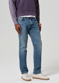 Our most relaxed fit, offering a straight fit throughout the hip and leg. If you loved our Sid or Perfect Casual Straight Fit, you will love the Elijah. This fit is true to size. Looks Like: Medium blue with fading throughout Feels Like: Signature comfort stretch heavyweight denim From our HUMANITY Collection DETAILS Closure: Zip Fly Rise: 10 3/4” Inseam: 32” Leg Opening: 16” Model is 6'1" and is wearing a Size 31 Fabric Content: 98% Cotton 2% Elastane Care Instructions: Machine wash cold inside out with like colors. Do not bleach. Tumble dry low. Made in USA with imported materials 6510B-1376_SANFE