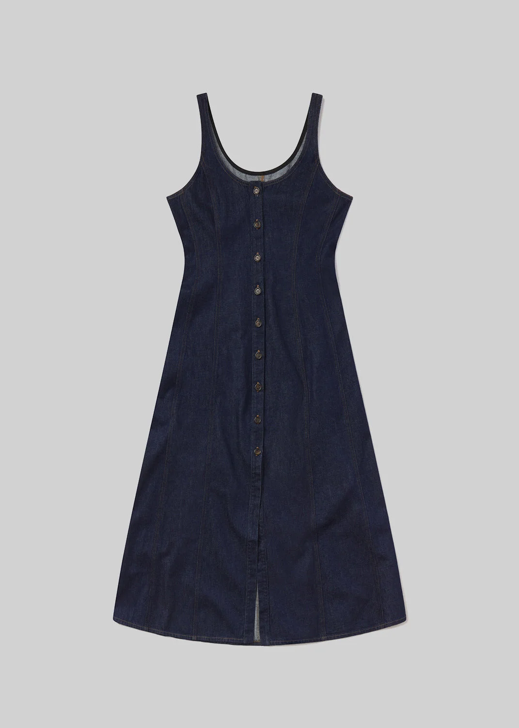 Timeless denim redefined with purpose. The Farrow Dress from the Citizens of Humanity x Argent Good Work collection is a classic button-front design, crafted from a blend of 80% regenerative cotton and 20% post-consumer recycled cotton. With its cinched waist and flattering silhouette, this dress exudes effortless style while maintaining a sharp, structured fit. Perfect for layering or wearing on its own, it combines the versatility of denim with a sustainable edge, making it a seasonless wardrobe essential. This fit is true to size. The Citizens of Humanity x Argent collection unites two brands driven by a shared commitment to responsible design, sustainability, and empowering women. Crafted for a modern wardrobe that transitions seamlessly from work to life, the collection features elevated, versatile pieces made with sustainable materials such as regenerative cotton and bio indigo dye. More than clothing, this collaboration is a call to action—championing values that matter and inspiring women to advocate for a more sustainable future. This product is made with regenerative cotton from Citizens of Humanity Group’s Regenerative Cotton Program. Our program collaborates closely with farmers both domestically and internationally, nurturing growth, fostering education, and encouraging the widespread adoption of regenerative agricultural practices. DETAILS Measurements: Chest: 34" Body Length: 51 1/2" Fabric: Shell: 100% Regenerative cotton Care Instructions: Machine wash cold with like colors, inside out, do not bleach, tumble dry low, iron medium if necessary, if decorated or printed do not iron. Made in USA with imported materials 450-1812_OMNI