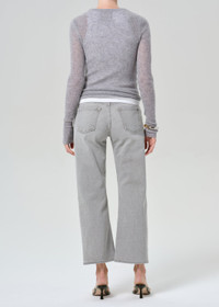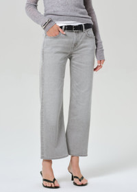 A modern nod to boyish vintage denim, the Faye sits low on the hip with a contoured inseam that enhances its slouchy, reimagined fit. Crafted from light grey Japanese comfort stretch denim, it offers the perfect balance of structure and ease. Cropped for a fresh, laid-back finish. This fit is true to size. Looks Like: Light washed grey denim pant Feels Like: Signature Japanese archive denim with the perfect amount of stretch From our HUMANITY Collection DETAILS Closure: Zip Fly Inseam: 27 1/2" Leg Opening: 19" Model is Model is 5'10" and wearing a size 27 Fabric Content: 98% Cotton 2% Polyurethane Care Instructions: Machine wash cold inside out with like colors. Do not bleach. Tumble dry low. Made in USA with imported materials 2281-3010_QRTGY