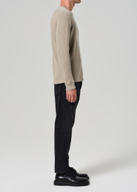 The Finn is a relaxed taper with a mid rise, full seat, and a clean taper from knee to ankle. This pair is cut from rigid, non-stretch denim made with regenerative cotton, offering structure with a soft hand. Finished in a deep black wash with subtle whiskering for a worn-in edge. This fit is true to size. Looks Like: Dark black denim Feels Like: Rigid, non-stretch cotton denim with a soft hand for all day wearability This product is made with regenerative cotton from Citizens of Humanity Group’s Regenerative Cotton Program. Our program collaborates closely with farmers both domestically and internationally, nurturing growth, fostering education, and encouraging the widespread adoption of regenerative agricultural practices. DETAILS Closure: Button Fly Rise: 12” Inseam: 31” Leg Opening: 14 1/4” Model is 6'1" and is wearing a size 32 Fabric Content: 100% Regenerative Cotton Care Instructions: Machine wash cold inside out with like colors. Do not bleach. Tumble dry low. Made in USA with imported materials 6165-3007_MMITE