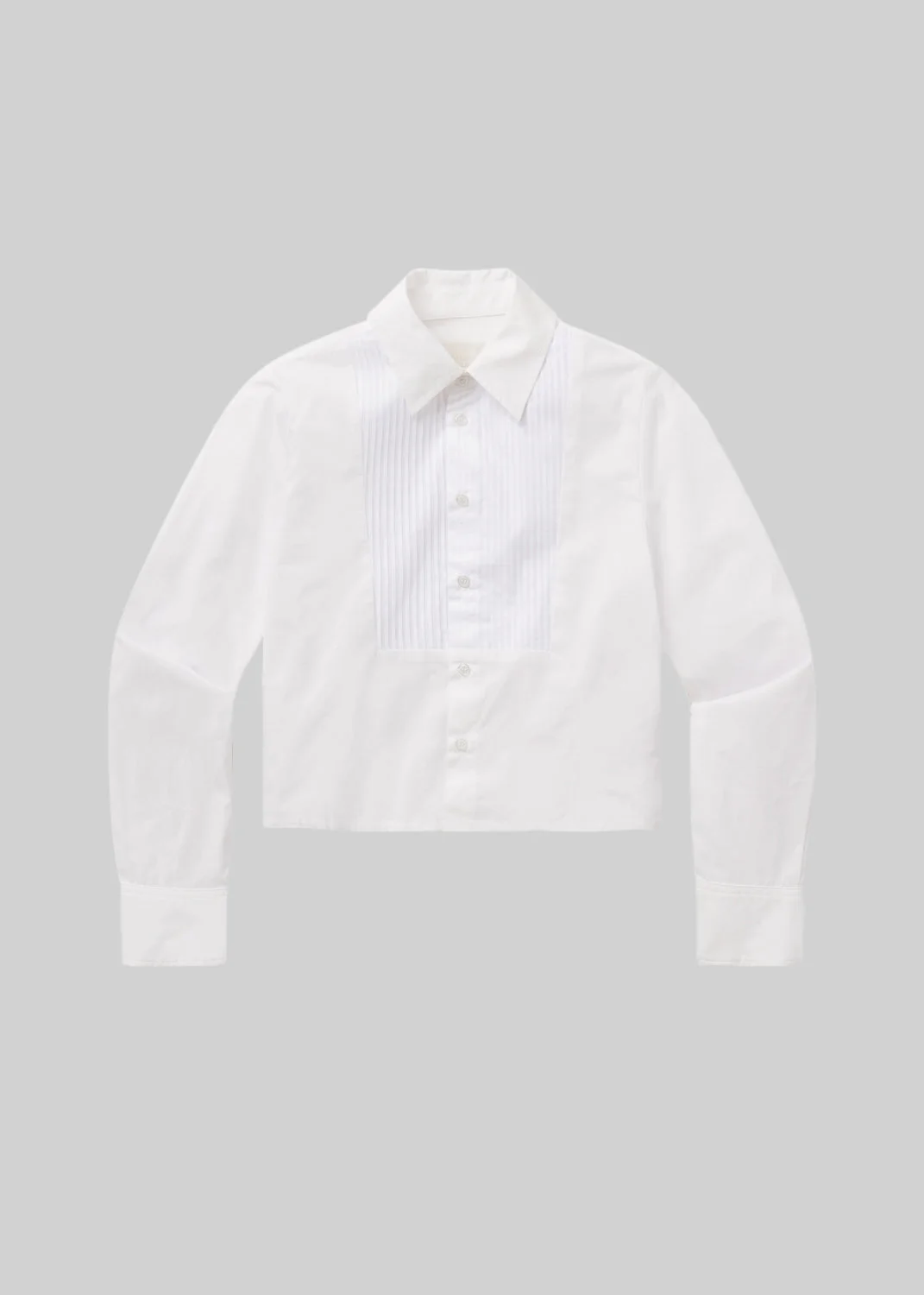 The Fino top exudes easy elegance with a classic, boxy fit. This fit is true to size. Looks Like: Stark white cropped top with tuxedo detailing across the front Feels Like: Ultra lightweight poplin From our HUMANITY Collection DETAILS Body Length: 20 1/2" Chest: 44" Sleeve Length: 24" Model is 5'10" and wearing a size Small Fabric Content: 100% Cotton Care Instructions: Machine wash cold inside out with like colors. Do not bleach. Tumble dry low. Made in India with imported materials 9410_WHT