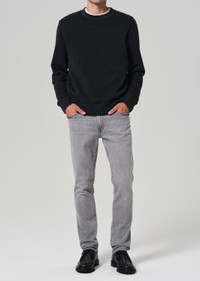 Our slim straight, relaxed through the thigh, with a gradual taper to the ankle, this is great for an athletic build. This fit is true to size. Looks Like: Medium to light grey with subtle fading and whiskering Feels Like: Archive cotton with the perfect amount of stretch for all day wearability From our HUMANITY Collection DETAILS Closure: Zip Fly Rise: 10 1/4” Inseam: 32 1/2” Leg Opening: 15” Model is 6'1" and is wearing a Size 31 Fabric Content: 98% Organic cotton 2% Elastane Care Instructions: Machine wash cold inside out with like colors. Do not bleach. Tumble dry low. Made in USA with imported materials 6180B-1549_ATNTC