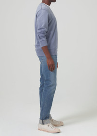 Our slim straight, relaxed through the thigh, with a gradual taper to the ankle, this is great for an athletic build. This fit is true to size. Looks Like: Medium indigo wash with light whiskering and fading, abrasion on top left pocket Feels Like: Heavyweight signature perform denim DETAILS Closure: Zip Fly Inseam: 36" Leg Opening: 15" Model is 6'1" and is wearing a Size 32 Fabric Content: 98% Cotton 2% Spandex Care Instructions: Machine wash cold inside out with like colors. Do not bleach. Tumble dry low. Made in USA with imported materials 7010-1152_ATLL