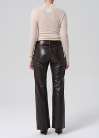A low-rise bootcut pant crafted from buttery recycled leather with slight stretch for ease. The silhouette fits true to size and falls to a full-length bootcut, offering a luxe, modern take on leather pants. Finished in rich chocolate, it’s a versatile style for both day and evening looks. This fit is true to size. Looks Like: Luxurious chocolate brown leather pant Feels Like: Buttery, recycled leather with slight stretch for ease From our HUMANITY Collection DETAILS Closure: Zipper Fly Rise: 10 1/4" Inseam: 31 3/4" Leg Opening: 19" Model is 5'10" and wearing a size 27 Fabric: 50% Recycled Leather 30% Polyurethane 10% Viscose 10% Polyester Care Instructions: Dry clean only. Made in Turkey with imported materials 2263-3013_CHO