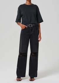 The Goldie Tee is a refined everyday staple, crafted from a structured lightweight cotton blend designed to hold its shape from morning to night. With a slim fit and classic short sleeves, it offers easy versatility and a flattering finish. Pair it with high-rise denim or layered under relaxed tailoring. This fit is true to size. Intended to be oversized. Looks Like: Washed Black Feels Like: Lightweight jersey cotton DETAILS Body Length: 24" Sleeve Length: 10 1/2" Model is 5'10" and wearing a size Small Fabric Content: 100% Cotton Care Instructions: Machine wash cold inside out with like colors. Do not bleach. Tumble dry low. Made in USA with imported materials 9272-1034-WBLK