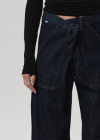 The Ines is a high-rise utility trouser with a structured silhouette and subtle utilitarian edge. Crafted from weightless, non-stretch regenerative cotton denim, it’s washed down for an ultra-soft, broken-in feel while holding its shape. Finished with a folded front closure and utility-inspired pockets, the Illa wash—a medium indigo with soft fading and marbling—adds a lived-in look. Style with crisp shirting or relaxed knits. This fit is true to size. Looks Like: Deep dark indigo denim trouser with fold front closure and utility pockets Feels Like: Non-stretch, weightless denim washed down for a super soft feel This product is made with regenerative cotton from Citizens of Humanity Group’s Regenerative Cotton Program. Our program collaborates closely with farmers both domestically and internationally, nurturing growth, fostering education, and encouraging the widespread adoption of regenerative agricultural practices. From our HUMANITY Collection DETAILS Closure: Zip Fly Rise: 12 1/4" Inseam: 30 1/2" Leg Opening: 21" Model is 5'10" and is wearing a Size 27 Fabric Content: 100% Regenerative Cotton Care Instructions: Machine wash cold inside out with like colors. Do not bleach. Tumble dry low. Made in Turkey with imported materials 2246B-3063_VGIL