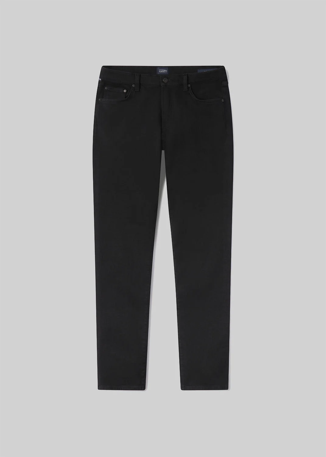 The ‘London’ is a modern slim taper, crafted from midweight stretch denim infused with cashmere for a uniquely soft hand. The silhouette fits clean through the thigh and narrows below the knee for a sharp, balanced look. Starless is a rich, dark black wash—minimal and refined for everyday wear. This fit is true to size. Looks Like: Clean dark black denim Feels Like: Signature perform denim blended with cashmere for a super soft hand From our HUMANITY Collection DETAILS Closure: Zip Fly Inseam: 32" Leg Opening: 13 1/2" Model is 6'1" and is wearing a Size 32 Fabric Content: 93% Cotton 5.5% Cashmere 1.5% Elastane Care Instructions: Machine wash cold inside out with like colors. Do not bleach. Tumble dry low. Made in USA with imported materials 6170-1799_STRLS