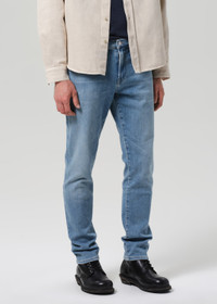 The ‘London’ is a modern slim taper, cut from lightweight regenerative Perform denim with comfort stretch and a soft, flexible feel. Designed to sit clean through the thigh and taper below the knee, it offers a streamlined yet easy silhouette. Pavillion is a light indigo wash with subtle whiskering and fading for a broken-in, everyday look. If you loved our Bowery fit, you will love the London. This fit is true to size. Looks Like: Light indigo denim Feels Like: Soft, stretch denim with a lightweight feel DETAILS Closure: Zip Fly Rise: 10 1/4” Inseam: 32” Leg Opening: 13 1/2” Model is 6'1" and is wearing a Size 32 Fabric Content: 81% Cotton 11% Lyocell 6% Polyester 2% Elastane Care Instructions: Machine wash cold inside out with like colors. Do not bleach. Tumble dry low. Made in Turkey with imported materials 6170-1691_PVLIO