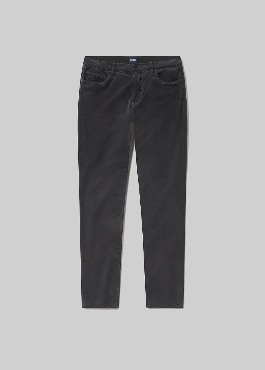 Our trimmest option, tailoring the slim to offer a trimmer look from the knee down while offering room throughout the hip and thigh. This fit is true to size. Looks Like: Clean dark charcoal Feels Like: Smooth midweight velvet DETAILS Closure: Zip Fly Rise: 10 1/2” Inseam: 32” Leg Opening: 13 1/2” Model is 6'1" and is wearing a size 32 Fabric Content: 53% Cotton 37% Modal 8% Polyester 2% Elastane Care Instructions: Machine wash cold inside out with like colors. Do not bleach. Tumble dry low. Made in USA with imported materials 6170-1710_CHACE