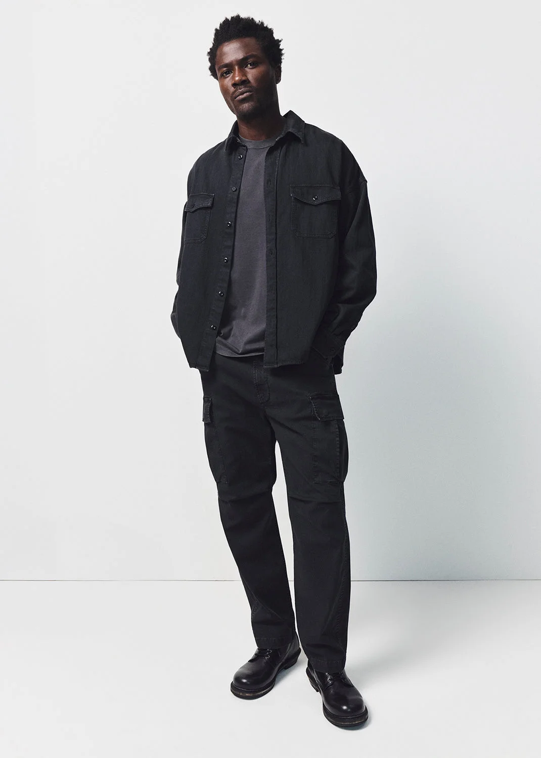 The ‘M-51’ Cargo Pant offers a refined take on utilitarian style, cut from midweight Japanese reverse sateen cotton with a soft, structured feel. Designed with classic flap pockets and functional drawstrings, the relaxed silhouette nods to vintage military uniforms. The washed black hue lends a worn-in edge—easy to dress up or down. This fit is true to size. Looks Like: Washed out black cargo pant with pocket detailing and drawstring Feels Like: Midweight Japanese sateen cotton DETAILS Closure: Zip Fly Rise: 13” Inseam: 29” Leg Opening: 16” Model is 6'1" and is wearing a Size 32 Fabric Content: 100% Cotton Care Instructions: Machine wash cold inside out with like colors. Do not bleach. Tumble dry low. Made in USA with imported materials 7028-1771_WBLK