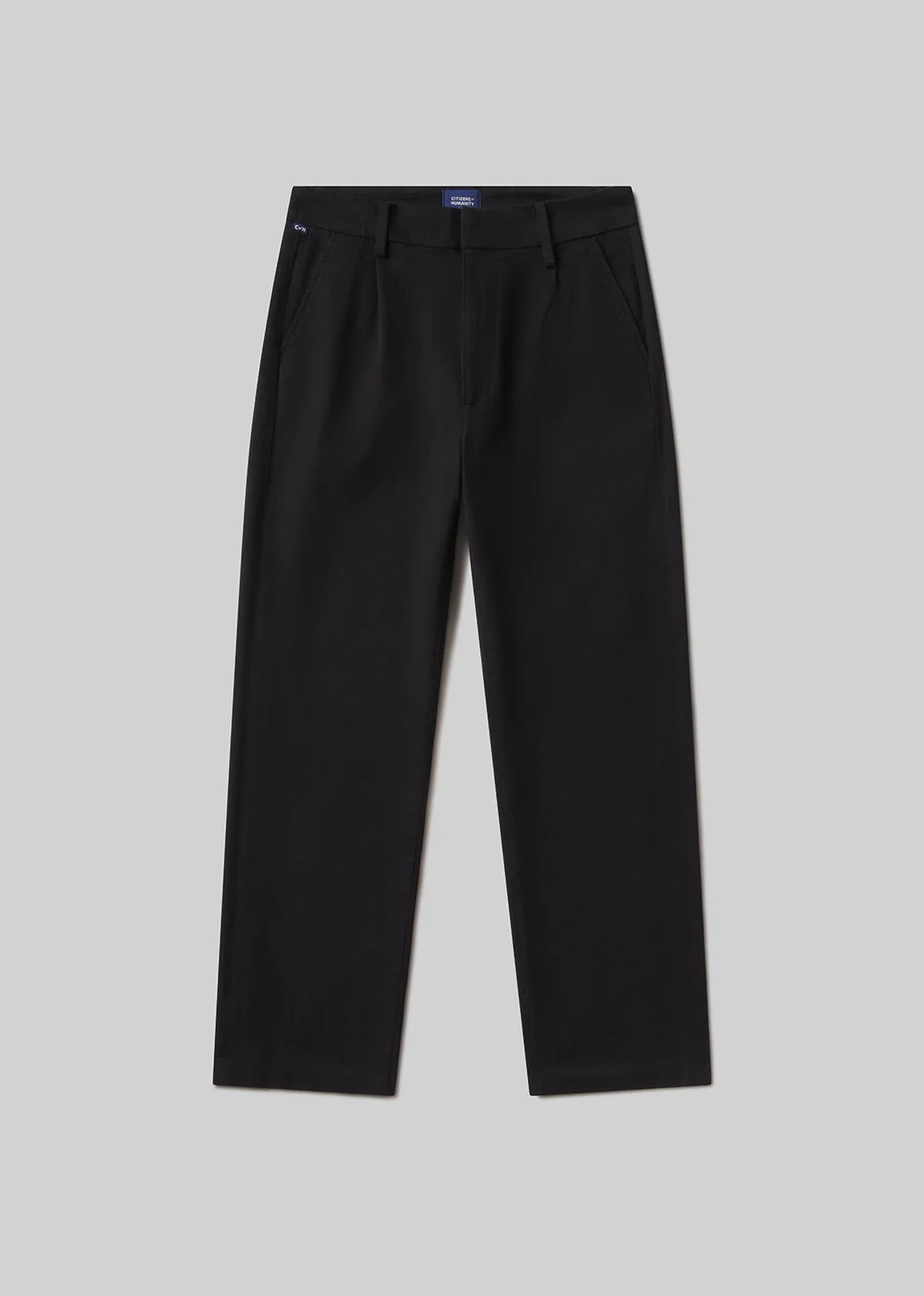 The Mallory Trouser is a refined wardrobe staple, cut from structured polished twill that holds its shape with ease. Designed with a high rise, straight leg, and front pleat detailing, it offers a clean, elongating silhouette. This fit is true to size. Looks Like: True black trouser with pleat front detail Feels Like: Signature twill fabric that mimics the ultra luxurious feel of cashmere From our HUMANITY Collection DETAILS Closure: Zip Fly Rise: 10 7/8" Inseam: 30 1/2" Leg Opening: 17" Model is Machine wash cold inside out with like colors. Do not bleach. Tumble dry low. Fabric Content: 49% Lyocell 49% Cotton 2% Elastane Care Instructions: Machine wash cold inside out with like colors. Do not bleach. Tumble dry low. Made in USA with imported materials 2280-1839_BLK