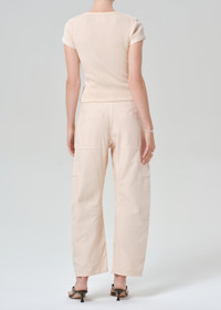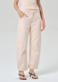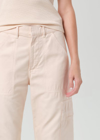 Easy and effortless. Our Marcelle features cargo-inspired detailing and relaxed straight leg that tapers at the ankle. Crafted a breathable but rigid, non-stretch twill for all day wear - style yours back to heels or sneakers. This fit is true to size. Looks Like: Washed out soft pink Feels Like: Midweight yet breathable rigid twill with a soft hand that gives a vintage feel. This product is made with regenerative cotton from Citizens of Humanity Group’s Regenerative Cotton Program. Our program collaborates closely with farmers both domestically and internationally, nurturing growth, fostering education, and encouraging the widespread adoption of regenerative agricultural practices. From our HUMANITY Collection DETAILS Closure: Zip Fly Rise: 11 3/4" Inseam: 27" Leg Opening: 17 1/2" Model is 5'10" and is wearing a Size 27 Fabric: 100% Regenerative Cotton Care Instructions: Machine wash cold inside out with like colors. Do not bleach. Tumble dry low. Made in Turkey with imported materials 2078-576_RSELL