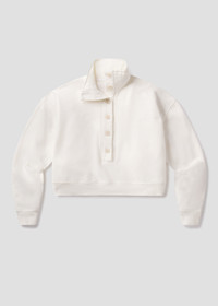 The ‘Mirelle’ is a modern update to the classic sweatshirt, crafted from soft brushed fleece with a plush, cozy feel. Designed with a high funnel neckline and button closure, the relaxed silhouette offers warmth and polish in equal measure. Ideal for off-duty layering or elevated lounging. This fit is true to size. Looks Like: Off white funnel neck sweatshirt with button closure Feels Like: Soft brushed fleece with a cozy plush feel From our HUMANITY Collection DETAILS Body Length: 21 1/4" Chest: 49" Sleeve Length: 22 1/4" Model is 5'10" and wearing a size Small Fabric Content: 100% Cotton Care Instructions: Machine wash cold inside out with like colors. Do not bleach. Tumble dry low. Made in USA with imported materials 9415-3057_PMINA