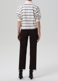 The ‘Palma’ is a modern straight leg with a streamlined, ankle-length cut. Crafted from soft stretch denim with a lightweight feel, it offers flexibility and all-day ease. Carob lends a rich, grounding tone—perfect with tonal layers or crisp white shirting. This fit is true to size. Looks Like: Clean dark brown denim pant Feels Like: Soft, stretch denim with a lightweight feel From our HUMANITY Collection DETAILS Closure: Zip Fly Rise: 11" Inseam: 27 1/2" Leg Opening: 17" Model is 5'10" and wearing a size 27 Fabric Content: 59% Organic Cotton 40% Viscose 1% Elastane Care Instructions: Machine wash cold inside out with like colors. Do not bleach. Tumble dry low. Made in Turkey with imported materials 2174-1542_CARO