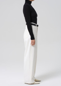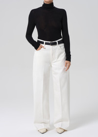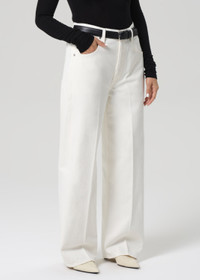 Our best-selling fit designed specifically for those with a smaller frame. Inspired by a reworked vintage silhouette - our Ayla offers a slightly relaxed but flattering top block into a roomy untacked cuffed leg that can also be worn uncuffed. This style is true to size and intended to sit relaxed at the natural waist. For a higher and closer fit, we recommend sizing down. Looks Like: Eggshell cream white with finished hems Feels Like: Heavyweight rigid cotton with an easy drape From our HUMANITY Collection DETAILS Closure: Button Fly Rise: 12 1/2" Inseam: 29" Leg Opening: 20 3/4" Model is 5' 3 1/2" and wearing a size 27 Fabric Content: 100% Cotton Care Instructions: Machine wash cold inside out with like colors. Do not bleach. Tumble dry low. Made in USA with imported materials 2177-1248_PMINA