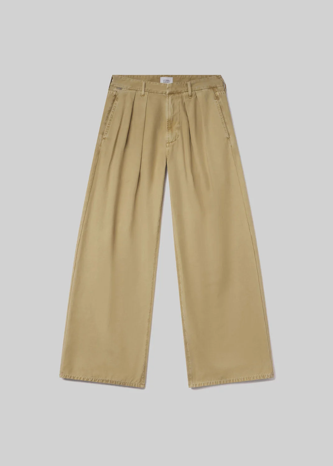 The ‘Petra’ is a high-rise, full-length trouser designed with sharp front pleats and a structured silhouette. Cut from rigid regenerative cotton twill, the midweight fabric holds its shape while offering all-day comfort. Gobi brings a neutral tone that complements crisp shirting or casual knits alike. This fit is true to size. Looks Like: Light to medium khaki trouser with front pleat detailing Feels Like: Rigid, non-stretch twill made to hold its shape all day long This product is made with regenerative cotton from Citizens of Humanity Group’s Regenerative Cotton Program. Our program collaborates closely with farmers both domestically and internationally, nurturing growth, fostering education, and encouraging the widespread adoption of regenerative agricultural practices. From our HUMANITY Collection DETAILS Closure: Zip Fly Rise: 12 1/2" Inseam: 30 1/2" Leg Opening: 24" Model is 5'10" and is wearing a Size 27 Fabric Content: 100% Regenerative Cotton 3% Care Instructions: Machine wash cold inside out with like colors. Do not bleach. Tumble dry low. Made in Turkey with imported materials 2206-576_GOBI