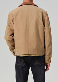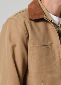 Meticulously hand-sanded and distinguished by its stylish corduroy collar and sophisticated shape, this piece features on-seam pockets for added functionality and timeless appeal. This fit is true to size. Looks Like: Medium to dark khaki Feels Like: Heavyweight durable bedford twill DETAILS Closure: Button Front Body Length: 27" Chest: 49 1/4" Sleeve Length: 25 1/4" Model is 6'1" and wearing a size Medium Fabric: 100% Cotton Care Instructions: Machine wash cold inside out with like colors. Do not bleach. Tumble dry low. Made in USA with imported materials M518-1705_HLOOM