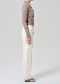 The Sienna Relaxed Utility is a modern interpretation of classic utility styling. Designed with a relaxed bootcut leg and functional pocket detailing, it balances ease with structure. Crafted from rigid regenerative cotton denim, it offers authentic texture with a refined, contemporary feel. This fit is true to size. Looks Like: Cream utility pant with side pockets Feels Like: Rigid, non-stretch cotton denim with a soft hand for all day wearability This product is made with regenerative cotton from Citizens of Humanity Group’s Regenerative Cotton Program. Our program collaborates closely with farmers both domestically and internationally, nurturing growth, fostering education, and encouraging the widespread adoption of regenerative agricultural practices. From our HUMANITY Collection DETAILS Closure: Zip Fly Rise: 10 5/8" Inseam: 31" Leg Opening: 23" Model is 5'10" and wearing a size 27 Fabric Content: 100% Regenerative Cotton Care Instructions: Machine wash cold inside out with like colors. Do not bleach. Tumble dry low. Made in USA with imported materials 2278-1185_PLSTR