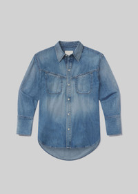 The Solene Shirt is a modern classic, cut from lightweight Japanese denim with a soft, natural drape. Designed for ease, it pairs effortlessly with structured denim or relaxed tailoring. This fit is true to size. Looks Like: Medium to light indigo denim long sleeve shirt Feels Like: Lightweight Japanese denim crafted from breathable, soft cotton with a gentle, natural drape From our HUMANITY Collection DETAILS Body Length: 28 5/8" Sleeve Length: 24 3/4" Model is 5'10" and wearing a size Small Fabric Content: 100% Cotton Care Instructions: Machine wash cold inside out with like colors. Do not bleach. Tumble dry low. Made in USA with imported materials 9422B-1527_LOIRE