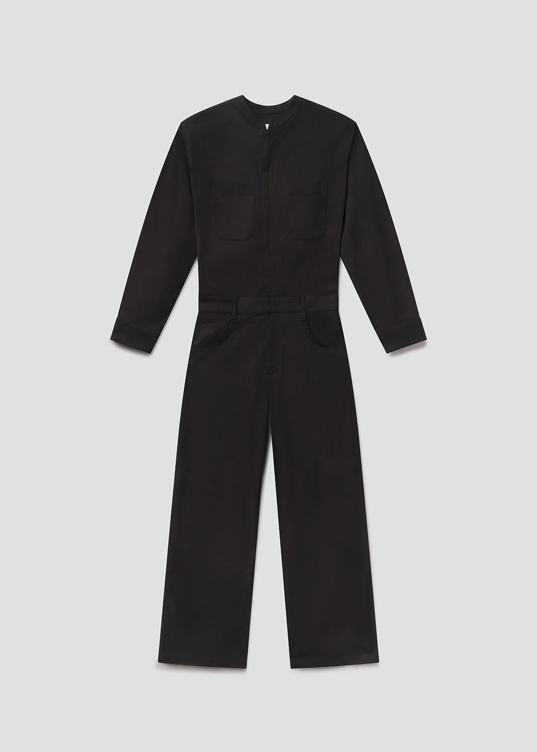 A clean one-piece solution, the Straight Jumpsuit is cut from breathable stretch twill with a soft, vintage-inspired hand. Designed with a straight leg and zipper front closure, it’s a modern essential that transitions effortlessly from day to night. This fit is true to size. Looks Like: True black long sleeve jumpsuit with zipper front closure Feels Like: Lightweight breathable stretch twill with a soft hand that gives a vintage feel From our HUMANITY Collection DETAILS Closure: Zip Fly Rise: 11 3/4" Inseam: 29" Sleeve Length: 23" Leg Opening: 19 1/4" Model is 5'10" and wearing a size 4 Fabric: 97% Cotton 3% Elastane Care Instructions: Machine wash cold inside out with like colors. Do not bleach. Tumble dry low. Made in USA with imported materials 2249-1696_BLK