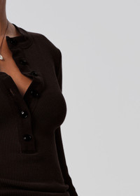 A wardrobe foundation, redefined. This long-sleeve henley is cut from a soft waffle rib that fits close to the body for subtle structure. Designed with a functional button placket, it transitions seamlessly from on-duty to off-hours—buttoned up or perfectly undone. This fit is true to size. Argent and Citizens of Humanity reunite for Good Work: Collection Two a capsule that builds on the brands’ shared mission to shape a better future—one that is responsibly crafted and empowers women to look and feel their best. Built on a foundation of sustainable and regenerative materials, Collection Two reimagines tailored denim silhouettes in deep washes; rich seasonal shades of tobacco and cocoa, and a fresh approach to classic suiting, round out the assortment. Designed to move seamlessly from the workplace to life beyond, the capsule reinforces a modern uniform for all facets of life.. DETAILS Body Length: 22" Sleeve Length: 25" Model is 5'10" and wearing a size Small Fabric Content: 100% Cotton Care Instructions: Machine wash cold inside out with like colors. Do not bleach. Tumble dry low. Made in USA with imported materials 9400B-1785_CHOCO