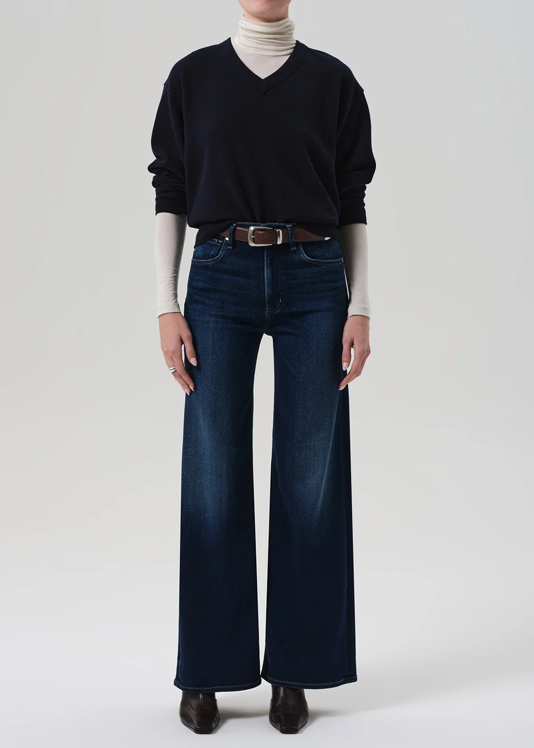 The ‘Vernata’ is a plush fleece pullover with a deep V neckline and relaxed fit. Cut from brushed cotton blend fleece, it offers an ultra-soft, cozy feel—perfect for layering over denim or pairing with easy loungewear. This fit is true to size. Looks Like: Dark navy v-neck long sleeve sweater Feels Like: Signature super soft sueded fleece with a smooth and plush hand This product is made with regenerative cotton from Citizens of Humanity Group’s Regenerative Cotton Program. Our program collaborates closely with farmers both domestically and internationally, nurturing growth, fostering education, and encouraging the widespread adoption of regenerative agricultural practices. From our HUMANITY Collection DETAILS Body Length: 23" Chest: 44 1/2" Model is 5'10" and wearing a size Small Fabric Content: 58% Regenerative Cotton 21% Cotton 21% Polyester Care Instructions: Machine wash cold inside out with like colors. Do not bleach. Tumble dry low. Made in USA with imported materials 9459-1445_NVY