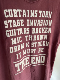 From Hedi Slimane's Autumn/Winter 2005 collection entitled "In The Morning". Phrase was inspired by a December 2004 at the Astoria riot (in which Hedi was caught up) sparked by Pete Doherty not turning up to a Babyshambles gig: "Curtains torn/Stage invasion/Guitars broken/Mic thrown/Drum k stolen/It must be THE END." Very desired and sought after shirt, don’t hesitate. Perfect for collectors - will only continue to get rarer and more valuable. Fits a size S