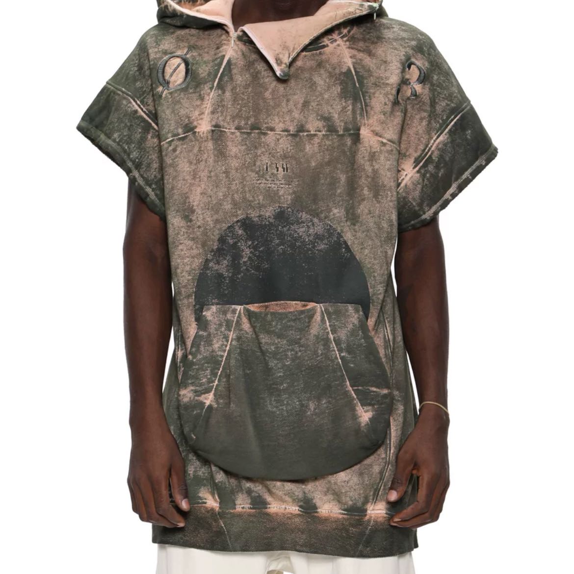 MOON PRMTVSM MOLDY THYME GARMENT-DYED PRINTED SLEEVELESS JACKET SIZE L/XL