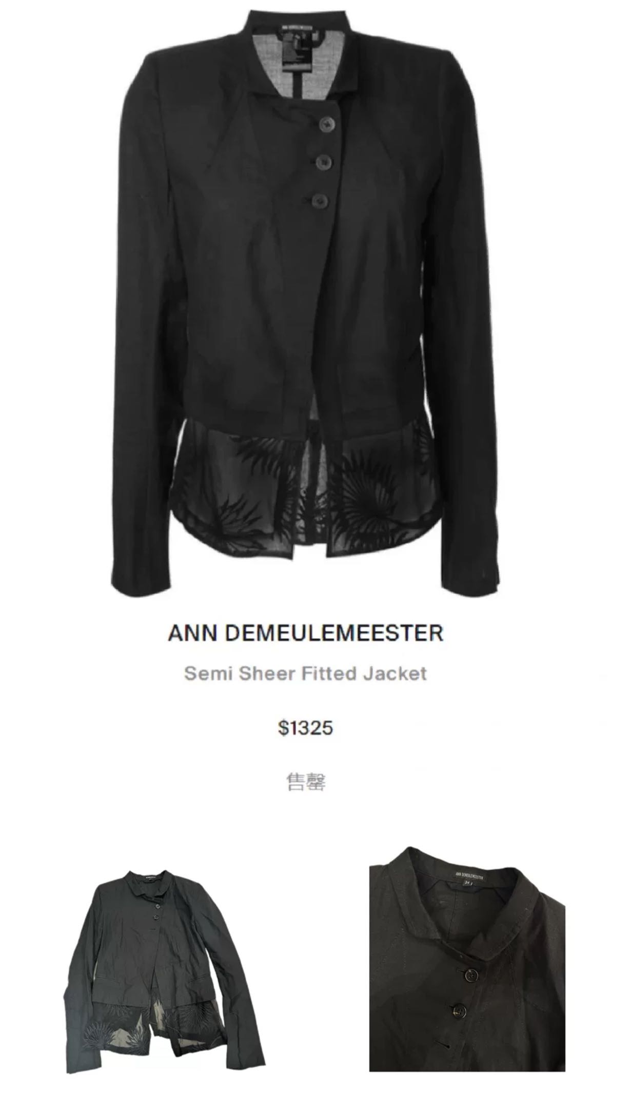 Ann Demeulemeester 07 jacket size 34