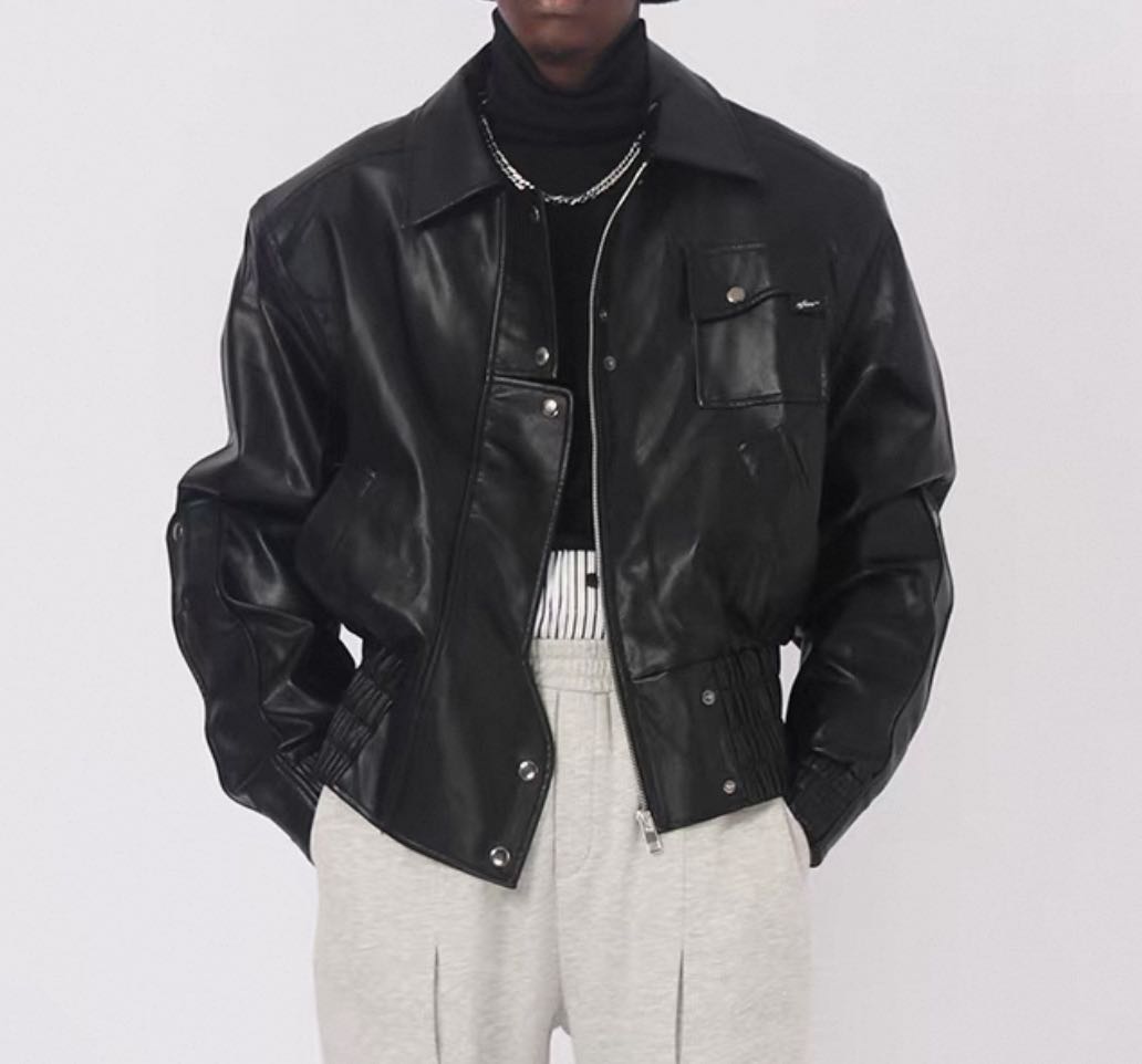 ASSEEN Original Wide-Shouldered Vintage Biker Leather Jacket zize M/L
