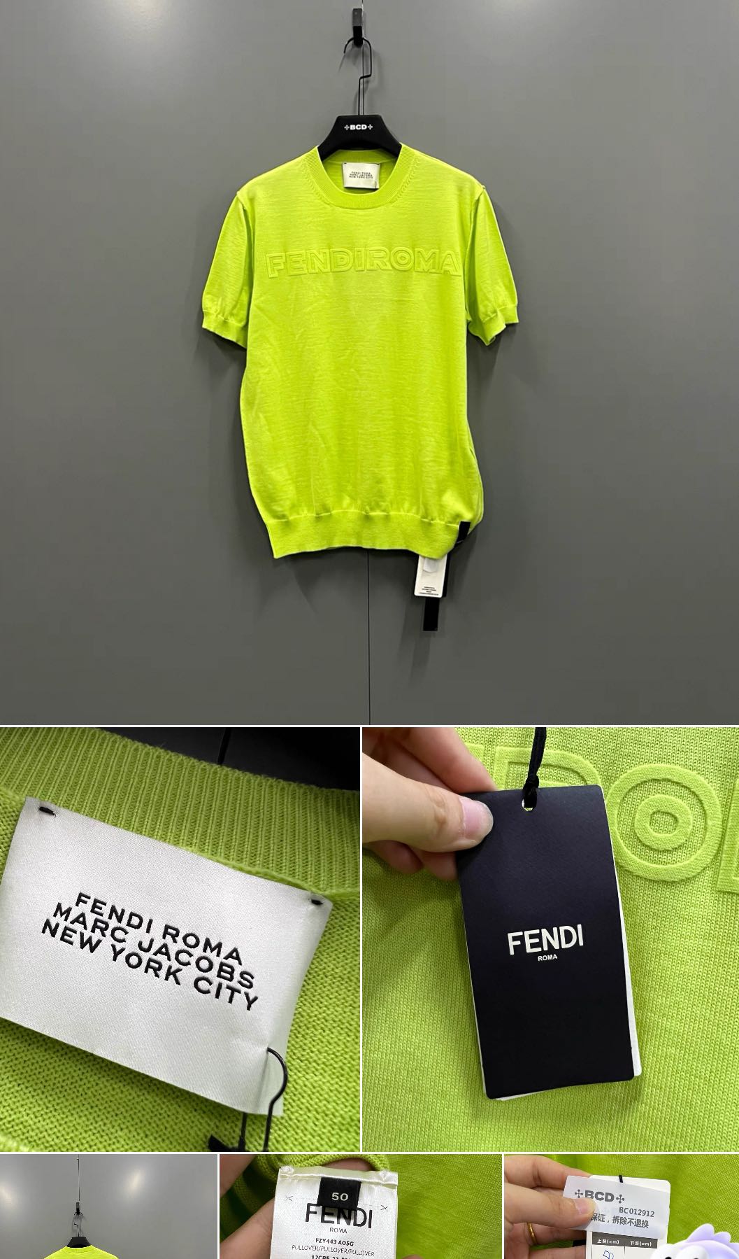 FENDI Fendi Letter Embroidery Round Neck Knitted Short Sleeve Size 48*4