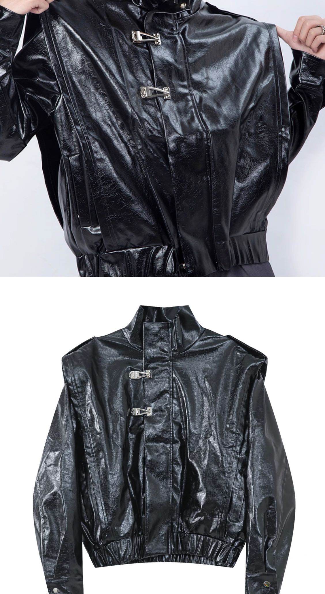 PLAN1ONE coriander same style double-layer shawl glossy leather jacket