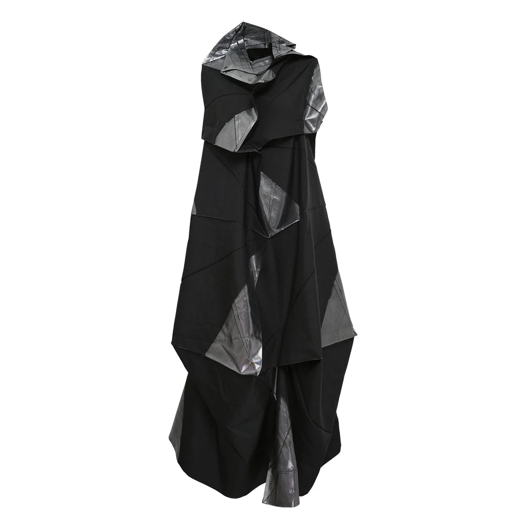 600069377BLK003 / IL58FH543/00/15/NOV - Hooded neckline design - Metallic foil panel details - Geometric pleating construction - Technical fabric blend - Floor-length silhouette - Avant-garde architectural shape - Signature folding technology 132 5. ISSEY MIYAKE Foil Woven Dress delivers avant-garde fashion with innovative pleating technology and architectural silhouettes. Crafted from technical fabric with metallic foil accents, featuring the brand's signature geometric folding construction. The transformative design and experimental material treatment create a striking statement piece for contemporary fashion.