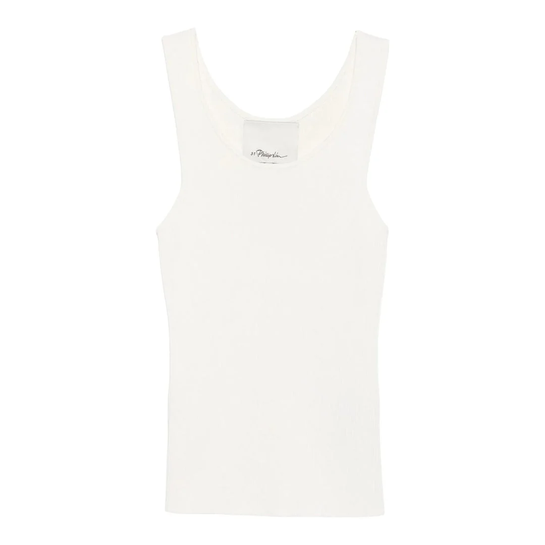600053209OWT0XS / S242-70098VCO/00/IV122 - Compact ribbed cotton construction - Scoop neckline - Sleeveless design - Form-fitting silhouette - Premium ivory colorway - Signature 3.1 Phillip Lim branding The 3.1 Phillip Lim Compact Rib Layering Tank delivers versatile sophistication as the perfect wardrobe foundation piece. Crafted from premium compact ribbed cotton in clean ivory, featuring the brand's signature minimalist aesthetic with refined construction. The sleek silhouette and luxurious hand-feel create an essential base layer for effortless layering and contemporary styling.