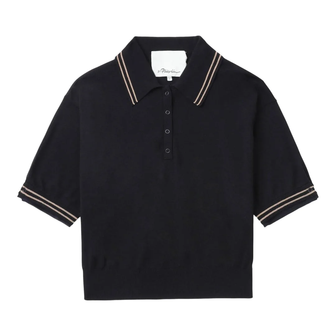 300048239NVY-SS / P5P251-70468FWM/00/NA410 - Four-button polo placket - Organza trim on collar and sleeve cuffs - Cropped silhouette - Contrasting piping details - Premium cotton knit construction - Short sleeves - Relaxed fit The 3.1 Phillip Lim Cropped Polo With Organza delivers contemporary elegance with modern proportions and luxurious fabric composition. Crafted from premium cotton knit with contrasting organza trim details on the collar and sleeves, creating sophisticated texture contrast. The cropped silhouette and refined piping elevate the classic polo design with architectural precision.