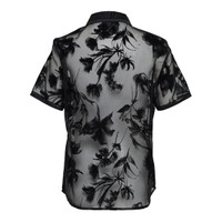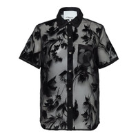 600075330BLK004 / F251-21737FTF/00/BA001 - Flocked organza construction with botanical motifs - Contrast black collar and button placket - Short sleeves with finished hems - Button-front closure - Single chest pocket - Semi-sheer fabric - Regular fit The 3.1 Phillip Lim Flocked Organza Short Sleeve Shirt delivers contemporary elegance with sheer sophistication and artistic detailing. Crafted from premium flocked organza featuring bold black botanical motifs on a translucent base with contrast collar and button placket. The semi-sheer construction and dramatic floral velvet appliques create a statement piece that balances feminine romance with modern edge.