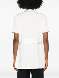 300040166IVY-MM / P4P242-70115TVT/00/IV122 - Layered polo and poplin shirt construction - Contrast black piping on collar - Short sleeves - Button front closure - Cotton knit main body - Crisp poplin shirting layer - Relaxed fit 3.1 Phillip Lim Short Sleeve Polo With Poplin Shirting Layer delivers contemporary sophistication through innovative layered construction. Crafted from premium cotton knit with crisp white poplin shirting layer beneath, featuring contrast black piping details along the collar. The architectural layering technique creates visual depth while maintaining the comfort of classic polo styling.