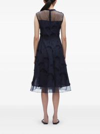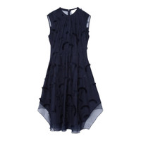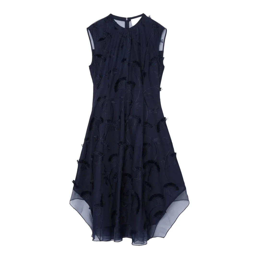 600071097NVY--0 / P251-90971FCV/00/MI401 - High mock neckline with keyhole back closure - Sleeveless construction - Dimensional floral appliques throughout - Asymmetric handkerchief hemline - Sheer organza overlay construction - A-line silhouette - Back zip closure The 3.1 Phillip Lim Sleeveless Dress With Organza Combo delivers contemporary elegance with textural sophistication and asymmetric design. Crafted from flowing organza with dimensional floral appliques throughout the navy fabrication, creating movement and visual interest. The high neckline and handkerchief hem silhouette showcase the brand's signature modern femininity with architectural details.