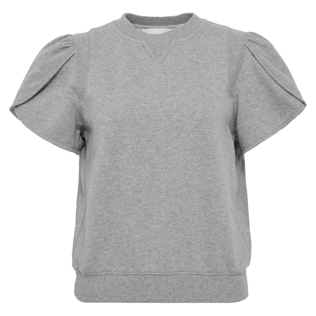 600078825GRY00L / E261-10367TFT/00/GR052 - Distinctive tulip-shaped sleeves with gathered detailing - Round crew neckline with ribbed trim - French terry construction - Ribbed hem and cuffs - Relaxed fit through body - Short sleeve design The 3.1 Phillip Lim Tulip Sleeve French Terry Top delivers contemporary sophistication with structured feminine details and comfortable construction. Crafted from premium French terry in sophisticated heather grey, featuring distinctive tulip-shaped sleeves with gathered detailing and ribbed trim. The structured silhouette and signature 3.1 Phillip Lim design aesthetic create a refined statement piece for modern wardrobes.