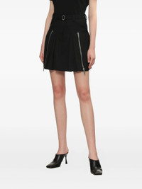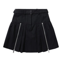 300048230BLK-02 / P5P251-36171UCV/00/BA001 - Adjustable belt with metal buckle - Dual diagonal zip closures at front - Pleated A-line silhouette - High-waisted design - Mini length - Cotton blend construction - Structured fit The 3.1 Phillip Lim Utility Double Zip Belted Mini Skirt delivers contemporary edge with functional design elements and structured silhouette. Crafted from premium black cotton blend with utilitarian-inspired detailing, featuring dual diagonal zip closures and adjustable belt for personalized fit. The architectural pleating and modern proportions create a bold statement piece that bridges streetwear and refined sophistication.