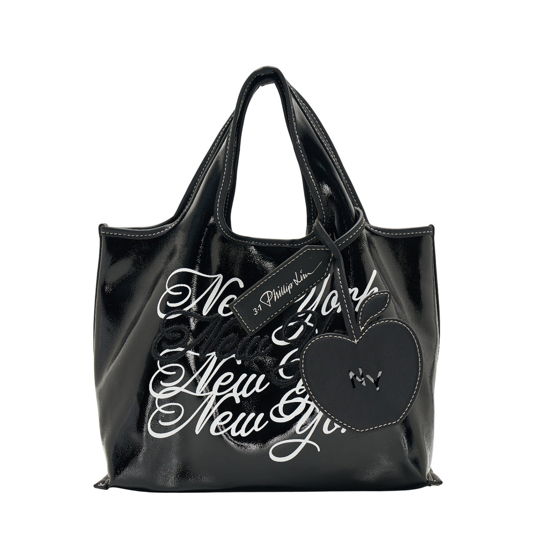 3.1 Phillip Lim We Are Ny Mini Market Tote Mini market tote is a playful take on a lunch bag, realized in laminated canvas and adorn with "WE ARE NY" graphic and embroidery. Apple bag charm with a silver-tone metal logo plaque is a cheeky homage to our home city.