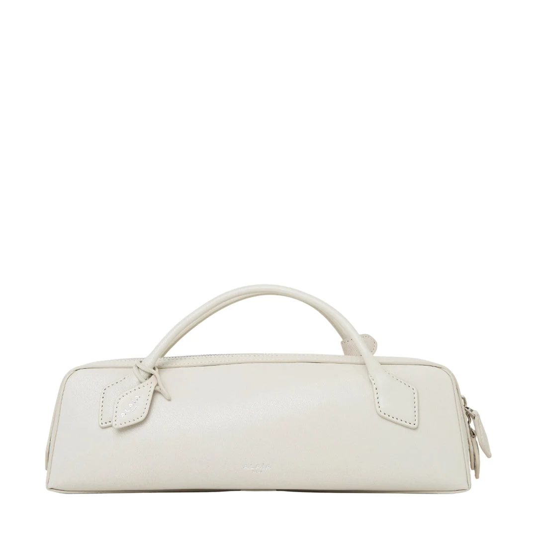 600066059WHT0OS / SS25-AA1S06026CA212/00/030 - Premium smooth leather construction - Top handle for versatile carrying - Zip closure - Compact rectangular silhouette - Minimal hardware design - Interior lined compartment The ALAIA Teckel Clutch delivers minimalist sophistication with the brand's signature architectural approach to leather goods. Crafted from premium smooth leather in pristine white, featuring clean lines and subtle stitching details that showcase French craftsmanship. The compact silhouette and refined construction create an elegant statement piece for contemporary styling.