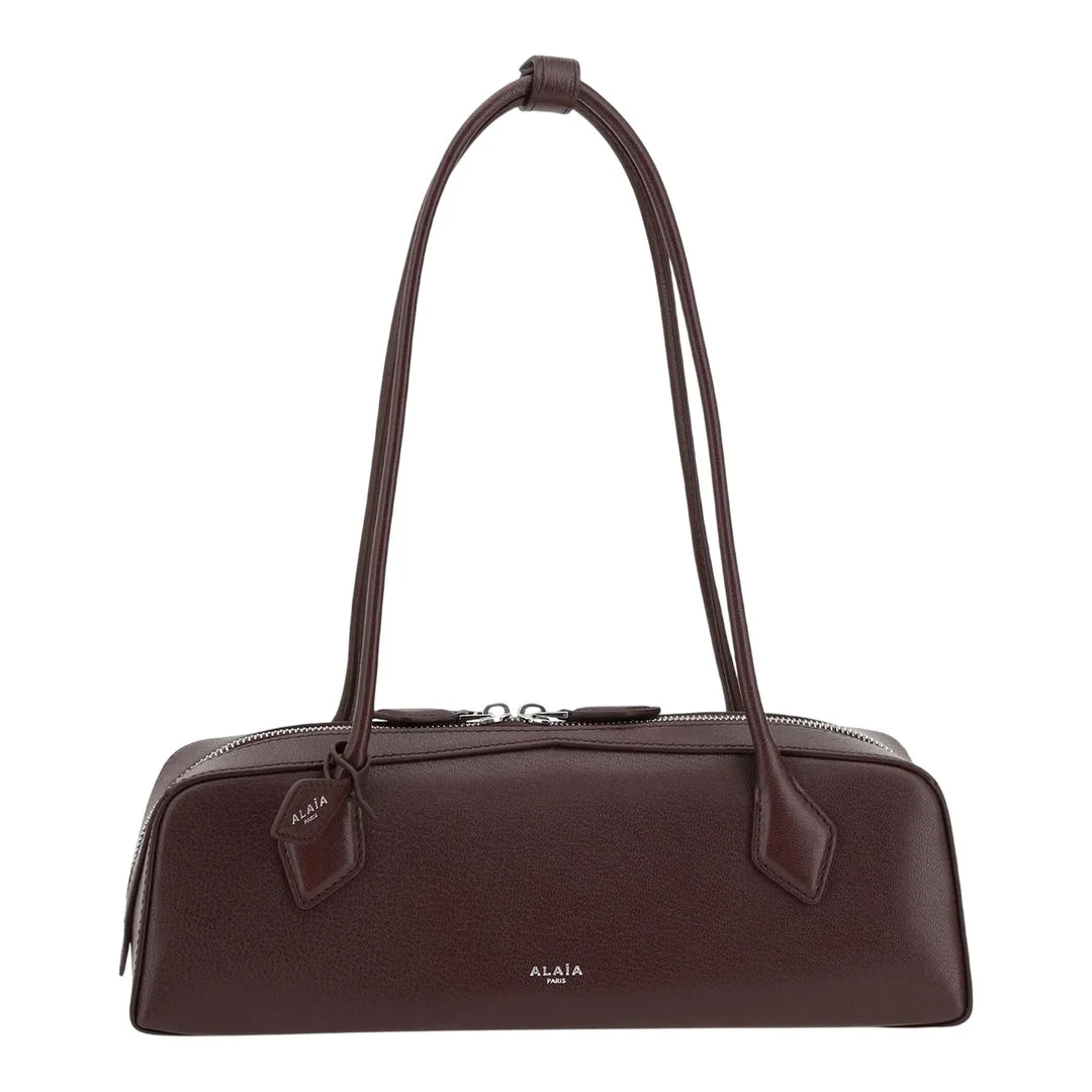 600066062DBR0OS / SS25-AA1S06033CA212/00/325 - Premium chocolate brown leather construction - Dual top handles with leather wrapping detail - Double zip compartments - Structured rectangular silhouette - ALAIA Paris branding - Medium size for everyday essentials - Luxurious leather lining The ALAIA Teckel Medium Bag delivers sophisticated French luxury with sculptural design and impeccable craftsmanship. Crafted from premium chocolate brown leather with signature ALAIA construction, featuring dual top handles and dual zip compartments for versatile functionality. The structured silhouette and rich leather finish embody the maison's commitment to timeless elegance and artisanal excellence.
