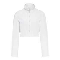 600074584WHT036 / AW-AA9C0996T611B/00/000 - High stand collar with gathered detail - Full-length button front closure - Long sleeves with fitted cuffs - Structured woven cotton construction - Contrast trim detailing - Tailored fit through body The ALAIA Trimmed Shirt delivers sophisticated French couture with architectural precision and feminine elegance. Crafted from premium woven cotton in crisp white, featuring the brand's signature sculptural approach to classic tailoring. The refined construction and distinctive trim detailing create a timeless piece that embodies ALAIA's legacy of exceptional craftsmanship.