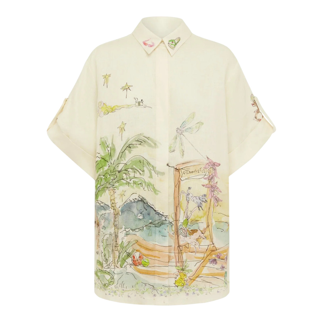 + Anouk Colantoni printed linen-gauze shirt Cream