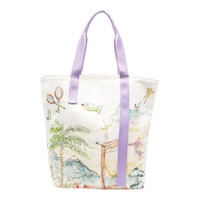600070423OWT0OS / 5491A/00/IVORY - Hand-drawn watercolor illustration print - Durable canvas construction - Purple woven shoulder straps - Spacious open-top design - Travel-inspired artistic motifs - Lightweight construction The ALEMAIS Anouk Shopper Tote delivers artistic expression with functional everyday design. Crafted from durable canvas featuring hand-drawn illustrations in soft watercolor pastels, showcasing whimsical travel-inspired motifs. The spacious interior and comfortable shoulder straps make this an ideal companion for daily adventures and artistic expression.