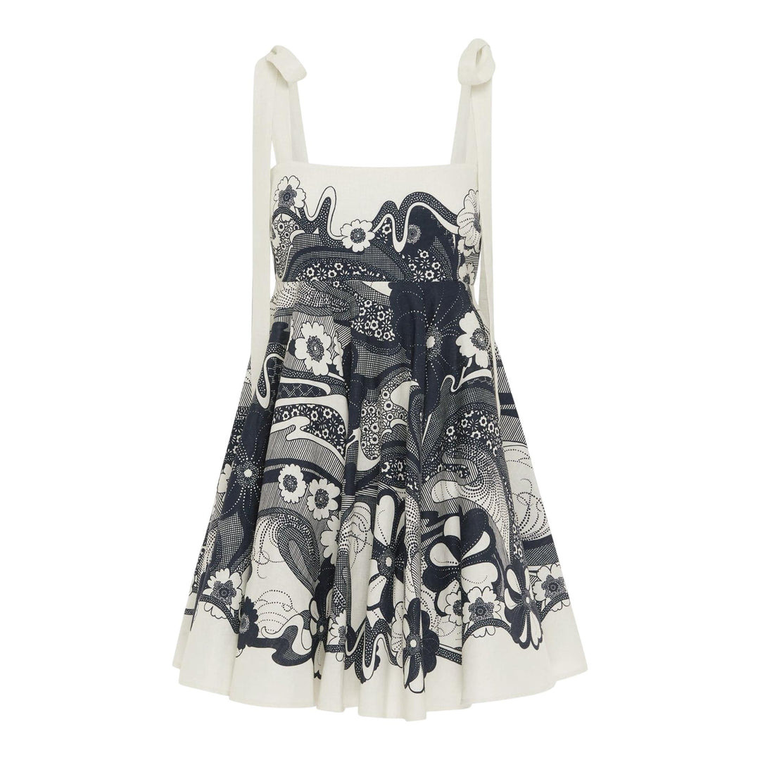 Mickey tie-detailed shirred floral-print linen-gauze mini dress Navy