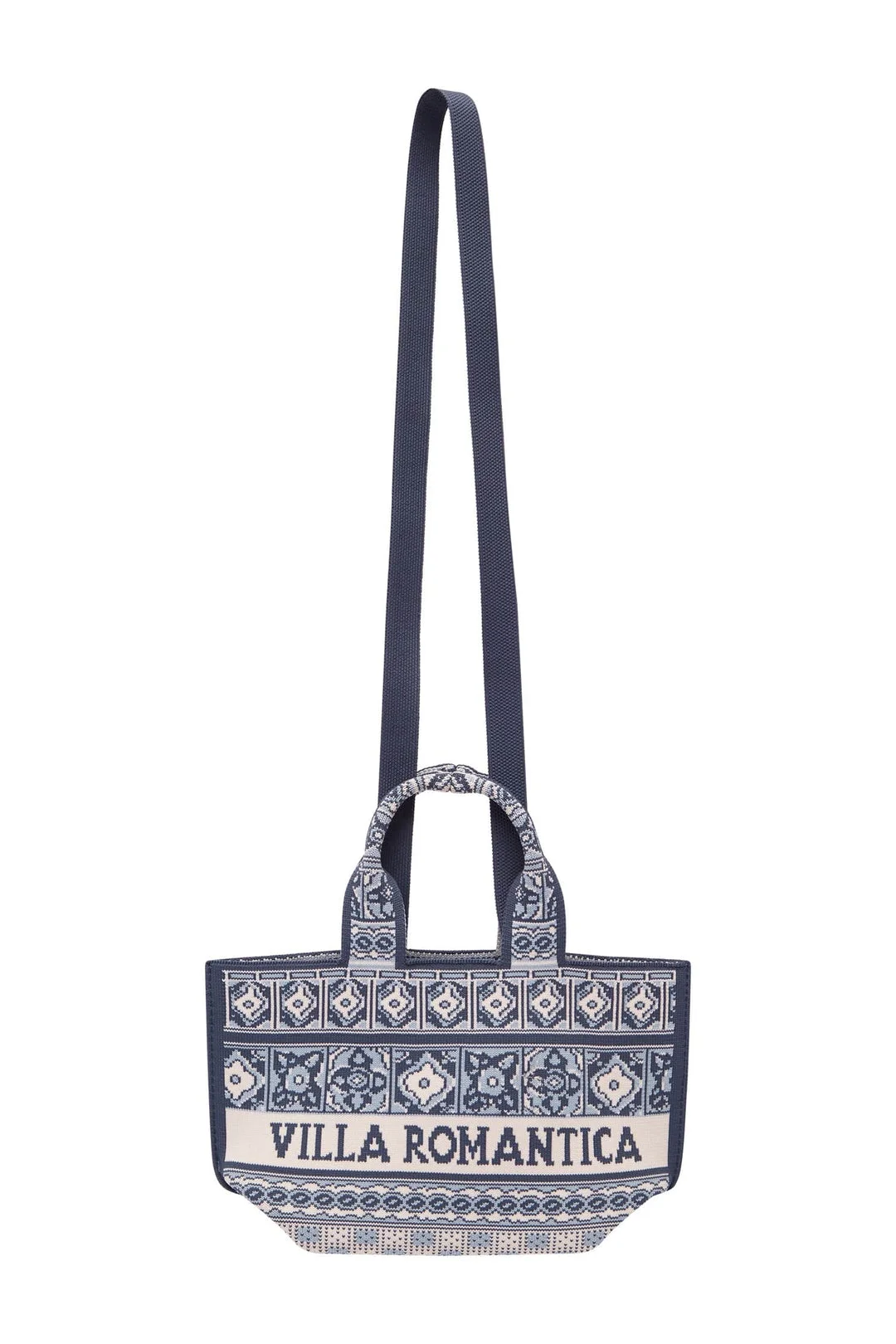 300050414BLU-NS / E66560A/00/BLUE - Jacquard woven fabric construction - Dual top handles - Adjustable crossbody strap - Geometric paisley pattern - Compact micro tote size - Navy and white colorway - Traditional jacquard weaving technique The ALEMAIS Villa Romantica Jacquard Micro Tote delivers bohemian luxury with intricate geometric patterning and compact functionality. Crafted from premium jacquard fabric in sophisticated navy and white, featuring traditional paisley motifs and architectural geometric designs. The structured mini tote silhouette with dual handles and adjustable crossbody strap offers versatile styling for contemporary wardrobes.