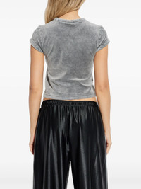 300050488GRY-SS / A54CC4251127/00/041D - Soft cotton jersey construction - Contrasting ringer neckline and sleeve cuffs - Short sleeve design - Cropped length - Relaxed fit - Subtle logo embossing at chest Alexander Wang Baby Ringer Tee delivers contemporary streetwear with a vintage-inspired silhouette and modern edge. Crafted from soft cotton jersey in sophisticated grey with contrasting ringer details, featuring the brand's signature minimalist aesthetic. The cropped fit and relaxed construction create a versatile statement piece for everyday styling.